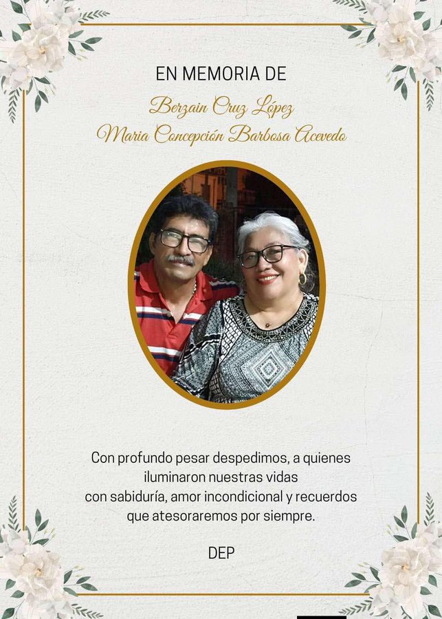María Concepción Barbosa Acevedo era esposa de Bersain Cruz López. Ambos estaban listos para disfrutar de los primeros minutos del 2026 en compañía de la persona que más amaban, es decir, su hija. María y su esposo fueron reportados como desaparecidos luego del accidente, pero lamentablemente confirmaron su fallecimiento.